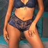 IMPERIAL BOXER O LACET: (bleu nuit) Boxer tout en dentelle ,couvrant largement les hanches et le fessier avec un laçage sur les côtés .C'est une coupe très confortable et peu habillée. Complétement sexy avec son dos tout tout en dentelle pour sublimer vos formes. * Un subtil jeu de voilé/dévoilé.