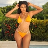 Entre audace et élégance, il incarne l’équilibre parfait entre le glamour et l’exotisme. Les lacets dorés, subtilement placés, soulignent la silhouette avec raffinement tout en apportant une touche bijou irrésistible. Un must-have pour briller sous le soleil comme sous les projecteurs.